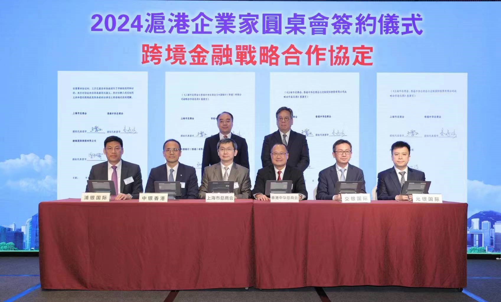 | 4月27日,2024滬港企業家圓桌會在香港舉辦,會上交銀國際與上海市總商會、香港中華總商會簽署三方“跨境金融戰略合作協議”,進一步拓展“政會銀企”合作機制服務圈。交銀國際首席執行官謝潔、上海市工商聯副主席王煜、香港中華總商會會長蔡冠深代表各方簽署協議,上海市委常委、統戰部部長陳通,香港特區政府商務及經濟發展局局長丘應樺見證簽約。 |